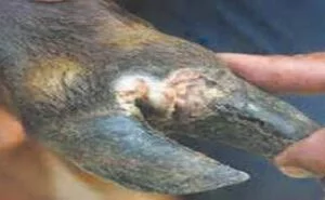 इस बीमारी में पशु को जाड़ा देकर तेज बुखार (104-106०F) होता है। पशु चारा कम खता है, दूध कम देता है, मुँह से लार बहने लगती है। बीमार पशु के मुँह में मुख्यत जीभ के उपर, होठों के अंदर, मसूड़ों पर साथ ही खुरों के बीच की जगह पर छोटे-छोटे छाले बन जाते हैं। फिर धीरे-धीरे ये छाले आपस में मिलकर बड़ा छाला बनाते हैं। समय पाकर यह छाले फूट जाते हैं और उनमें जख्म हो जाते हैं। मुँह मे छाले हो जाने की वजह से पशु जुगाली बंद कर देता है और खाना पीना छोड़ देता है, मुँह से निरंतर लार गिरती रहती है साथ ही मुँह चलाने पर चप-चप की आवाज़ भी सुनाई देती है। खुर में जख्म होने की वजह से पशु लंगड़ाकर चलता है। दुधारू पशुओं में दूध का उत्पादन 80 प्रतिशत तक कम हो जाता है। पशु कमजोर होने लगते हैं। प्रभावित पशु स्वस्थ होने के उपरांत भी महीनों तक और कई बार जीवन पर्यन्त कमजोर ही रहते हैं, कई बार गर्भवती पशुओं में गर्भपात भी हो जाता है। बड़े पशुओं में मृत्यु संख्या 2-3 प्रतिशत होती है, बछड़े/बछियों में मृत्यु संख्या अधिक होती है।